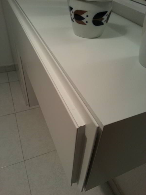Realizamos el cajón y la puerta con uñeros tallados. Al lacar queda todo en una sola pieza