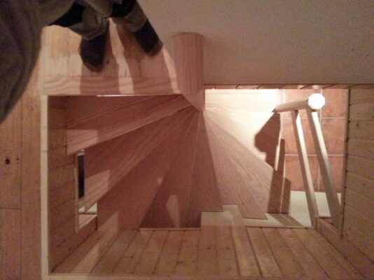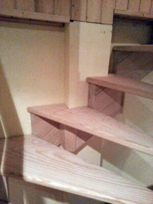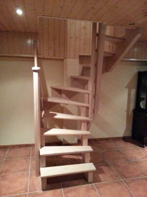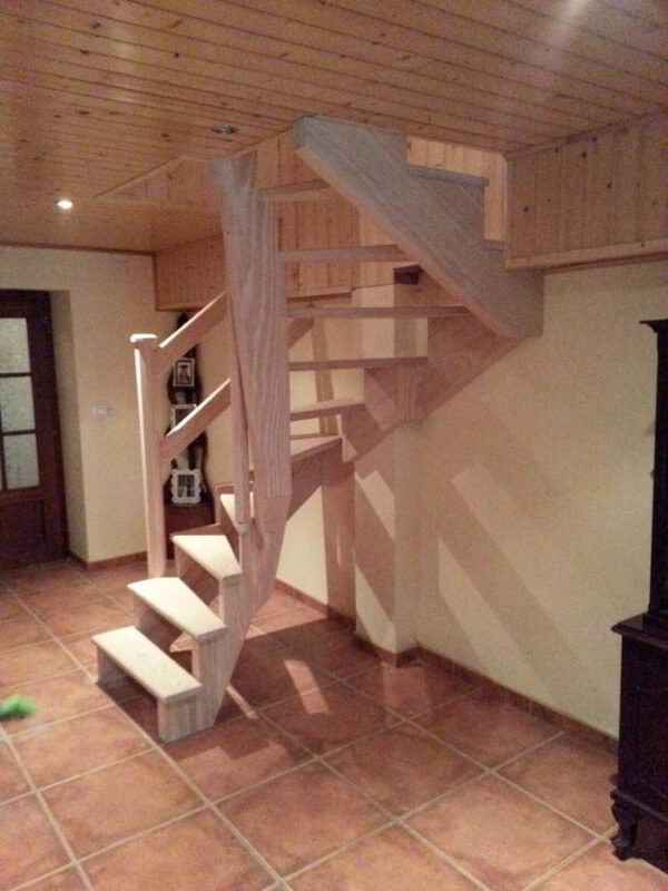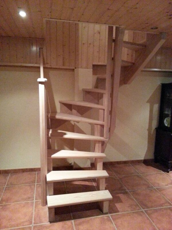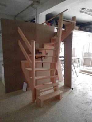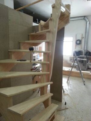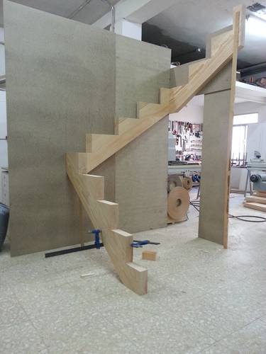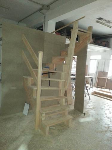 Pre-montarla prácticamente toda  en nuestras instalaciones  (peldaños, pasamanos, toda la madera)   también evita muchas molestias al los futuros propietarios. No tienen que soportar días de ebanistas haciendo polvo y extraños trabajando en casa.